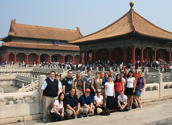 Peking, im Kaiserpalast (zum Vergrößern anklicken) (stehend v.l.n.r.) Jan Otto, Claudia Niebergall, Andreas Menge, Jutta Hilgenberg, Thomas Fink, Harriet Liesegang, Prof. Dr. Norbert Koubek, Stephanie Makulik, Suzan Karadeniz, Jan H. van Dinther, Julia Nikolaus, Michele Lagnese, Thomas Czarnecki, Aida Schnewer, Sven Schlotzhauer, Anna Weigandt, (hockend v.l.n.r.) Zhonghua Zhao, Alexander Meinold, Wolfgang Kuhn, Bernadette Pestka, Kirsten Meyer.